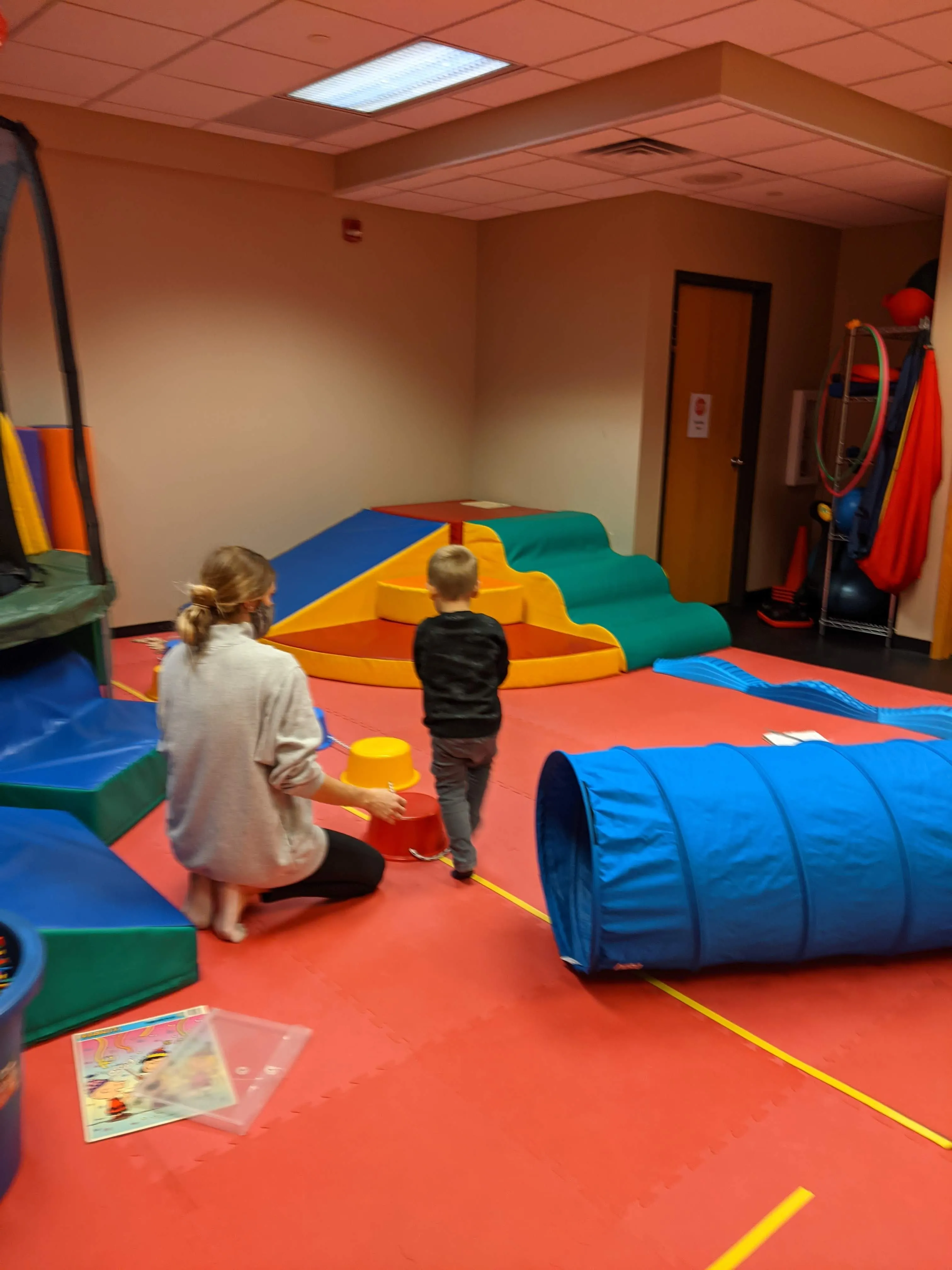 I finally called and said they told me it would be about 2 weeks and it’s been over that, when can we expect to hear the results and start therapy. They told me they could have the results sent over but that the therapist who did the evaluation is no longer employed there but that we could be seen by someone else. At this point we were within a couple weeks of moving, so I said forget it just send me the results. Mr. Blue had already developed a relationship and started to build a rapport with the other therapist and it seemed silly to introduce someone new when we were moving so soon. The results basically came back with yes, he had SPD and therapy was recommended to help deal with some of the more difficult challenges he and we face. So once we got settled in Iowa I started to look around to find an OT that would hopefully be a good fit. I made a few calls and found a place with openings, not easy to do, and we could get in soon. I had forwarded her the evaluation he had done in Arizona and since it had been done so recently she said she could not do another evaluation, insurance wise, and would just go off the information on that evaluation even though it was not how they would have done it.