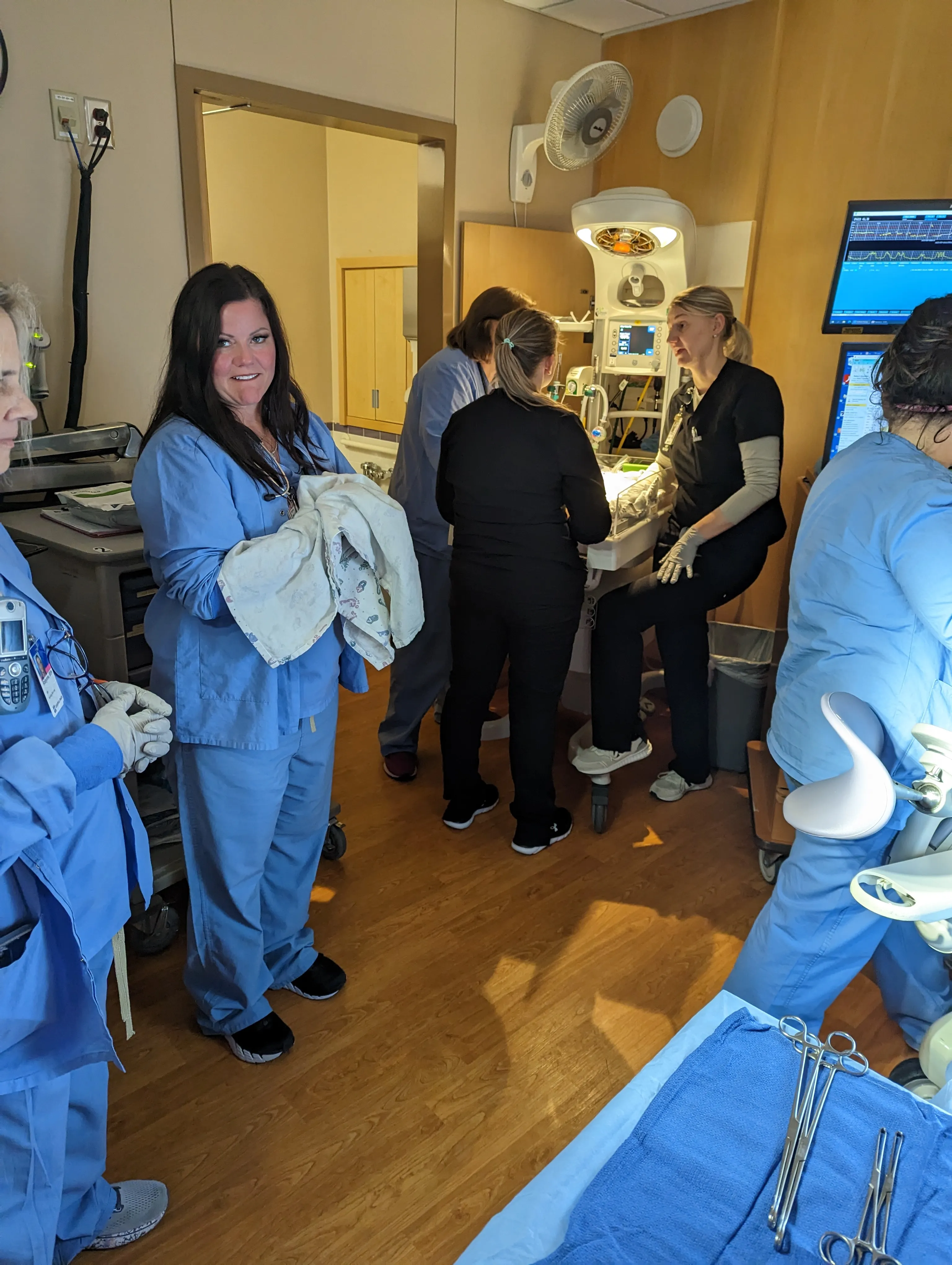 After receiving the epidural it helped some, but I was still majorly uncomfortable and the contractions were constant. They had me in the weirdest position ever and I started to become nauseous. I get really bad heartburn in the last trimester of pregnancy, I have with all 3, to the point that it will cause me to throw up. And the position they had me in was causing the heartburn to be so very bad. I had finally reached 10cm and they wanted me to start pushing, even though I hadn’t felt the urge yet. Since my last birth with Mr. Orange went so quickly they had every person available in the room should this one go the same way. They had the birth team, the NICU team, the baby team, just so many people in the room all staring at me.