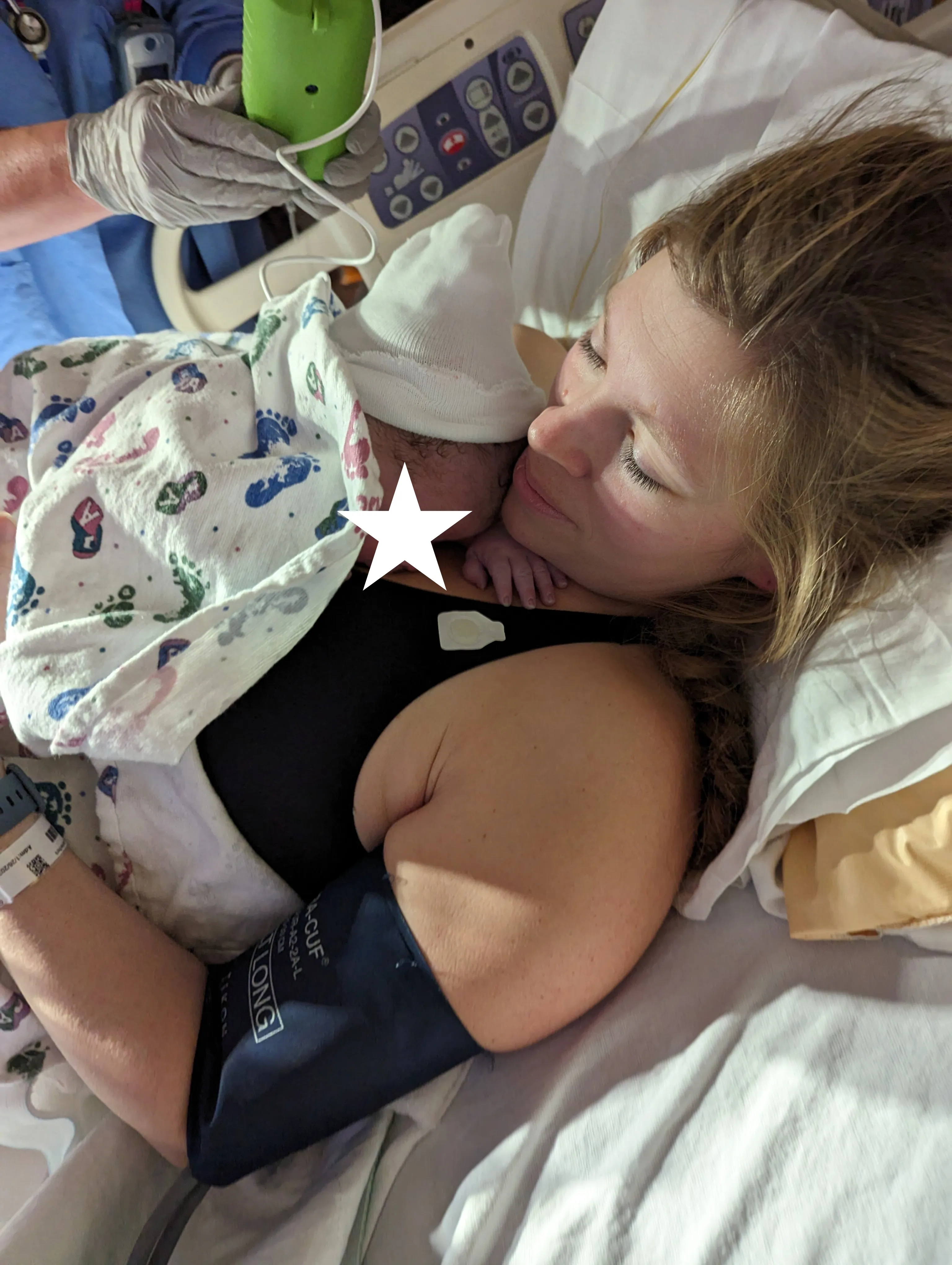 Once we arrived at the hospital, they checked me in at triage to see if they were going to keep me and I was already dilated to 8-9cm, we were there to stay. Once we got up to my room we got settled and met our nurses and prepared to hopefully have a pretty quick labor since I was already dilated so far. NOT. Labor pretty much stalled - for hours. I labored pretty intensely for many hours and I was so determined to do this one naturally as my one last chance at having the birth I had originally planned to have. The labor pain was so intense in my hips and Nic was constantly having to give me counter pressure but it just wasn’t enough. Around 9am the doctor said she was going to break my water but I was having constant contractions and could barely hold still long enough to let her try, I was so exhausted and decided I was done - I wanted to get an epidural. I felt so incredibly defeated to have not been able to complete my goal of a natural birth. Another experience that I wasn’t prepared for and was yet another reason I just have been so frustrated with standard hospital births - while I was shifting sides and having the peanut ball removed from in between my legs, a very vulnerable position, in comes the anesthesiologist - with a student. They then asked if it was okay if the student observed, well at that point he had already seen all there is to see of me in all my glory - so sure, why not. Later on when I was just processing things I remembered that instance and was so upset, birth is a vulnerable experience in itself, I shouldn’t have had to worry about situations like that. They should’ve had him wait outside the door while they asked me permission, I would’ve said yes because everyone needs opportunities to learn in real time - but the way they went about it was not okay.