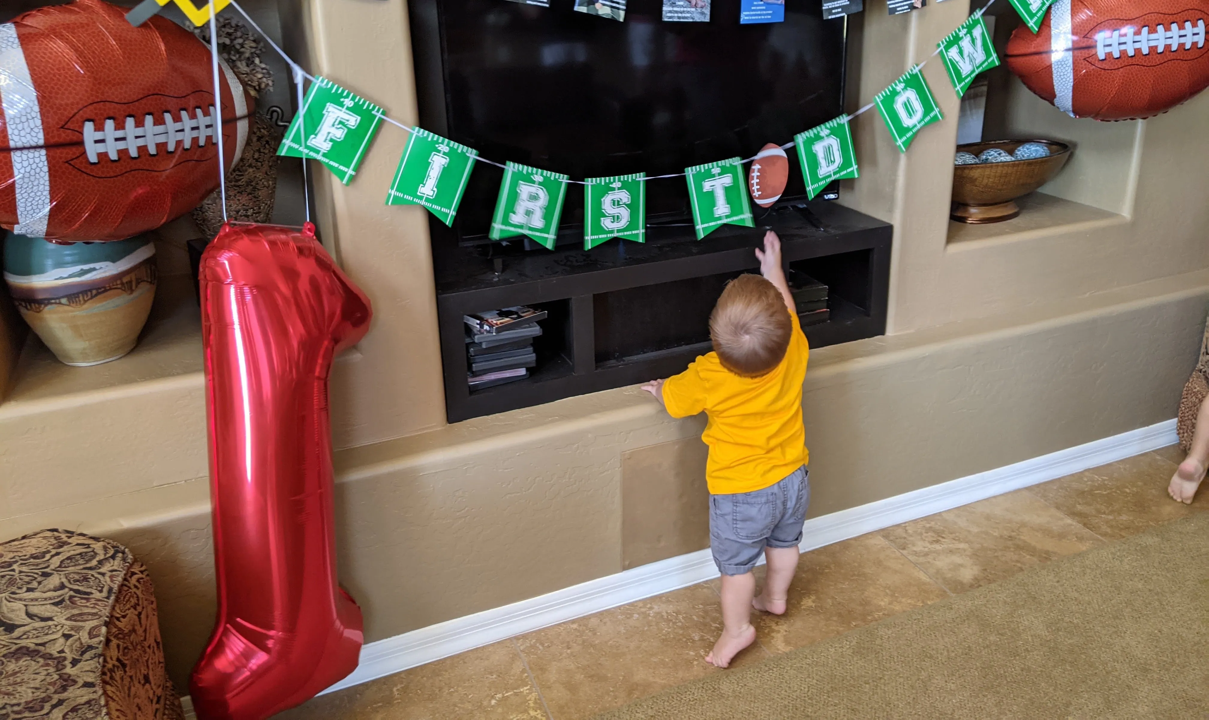 In September we celebrated a really fun first birthday for Mr. Orange with a First Year Down, football themed party. This time both sets of grandparents were able to come and we did so many fun things as a last hurrah on top of celebrating Mr. Orange’s first birthday. The day of the party was so fun and memorable to have one last big gathering with friends and family celebrating Mr. Orange.